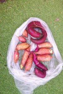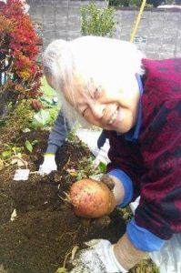今月のオハナではイモ掘りイベントを3日間、開催しました。今年の春、オハナの小さな畑に皆様に植えて頂いた苗を、また、一緒に収穫ができました。想像以上の収穫に「わーっ!こんなに大きいの穫れた!」等、童心に返って楽しんでおられました。