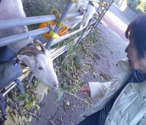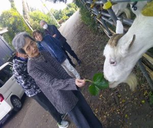また、片柳のヤギに収穫時に出たイモの葉っぱをドキドキわくわくしながらエサやりを行い、動物との触れ合いもお楽しみi頂きました。
