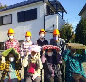 消防訓練ではヘルメットや座布団をかぶり、近所の神社まで避難を行いました。今月も皆さん、お疲れ様でした!