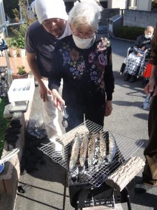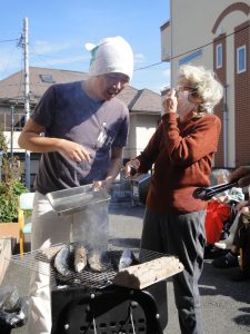 そして、みんなでお昼を作るのはもちろんのこと、炭から火をおこして、外でサンマも焼きました。