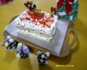 今回は2日間開催し、新しいゲームや美味しいランチ、ビンゴ大会にサンタさんからのプレゼント、職員手作りのクリスマスケーキなど盛りだくさんの内容でした。